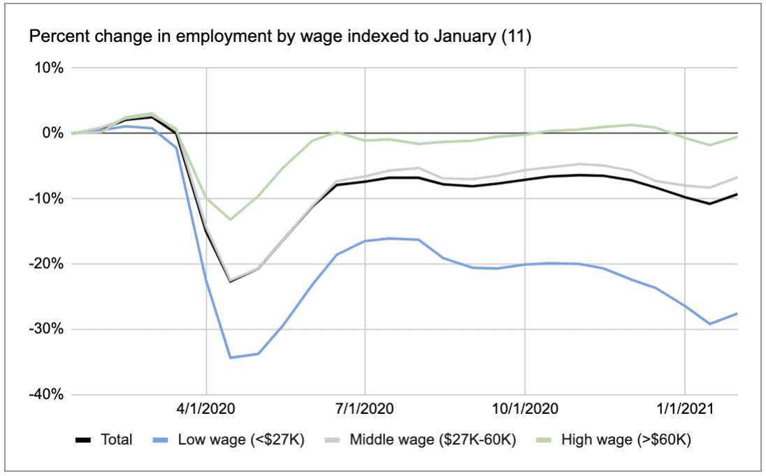 Opportunity Insights Economic Tracker. “Percent Change in Employment.” 2021